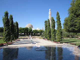 I had missed Sultan Qaboos' Grand Mosque when in Oman last time, about 7 years ago. We visited the marvellous mosque, which has been finished only in 2001, on Christmas Eve. It now harbors the world's second largest hand-woven carpet and chandelier (after those in Sheikh Zayed bin Sultan Al Nahyan mosque in Abu Dhabi which has been installed only in 2010). The mosque in Oman features architectural gems and recalls, at the same time, Cairo's Ibn Tulun and Esfahan's Shah mosque, the Timurid floral and Arabesque tiles in its Friday mosque, Safavid muqarnas, Persian weaving art and a Paradise garden.